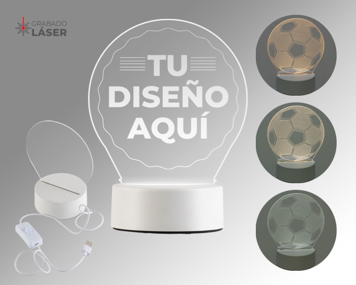 Lámpara de mesa con acrílico para grabar en láser el diseño deseado. La base cuenta con luz LED en 3 tonos (neutro, cálido y frío). Incluye: Acrílico sin diseño, conección con entrada USB con switch para encender, apagar y cambiar el tono de la luz. Presentación: Caja Individual.